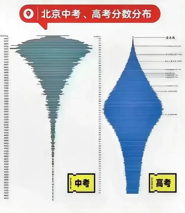 一个正常的选拔性考试的成绩分布本该是纺锤形正态分布,高分段和低分段人少,而中等分数部分的人数最多,然而近年来,以北京中考成绩为代表的蘑菇云型成绩分布正在很多地区中高考成绩分布中隐然浮现,在这种分布中,大量的高分段考生扎堆,中等与低分考生数量却很少。