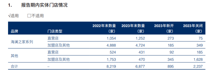 这个男装巨头,正经历着转型阵痛。从2023年底的6877家门店增至2025年上半年的7209家,门店总数增长。其中直营店从1252家增至1532家,但加盟店数量却从4724家缩至4191家,两年半内减少了533家,平均每1.5天就有一家海澜之家加盟店关闭。
