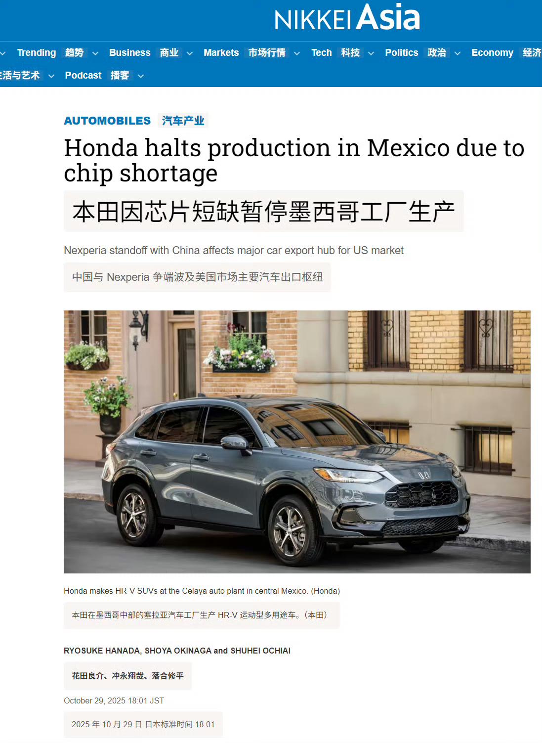 认证可不只是AEC-Q100而已,还有ISO 26262、IATF 16949等认证,有的是独立认证,有的还是关联认证,所以业界都评估要代替安世半导体至少2-3年以上。即使是平行的B计划芯片,产能提升也得几个月,欧洲车企的备货现在就已经见底了,大众汽车都开始停产了,甚至日本的本田汽车也因为安世半导体芯片禁止出口而停产。